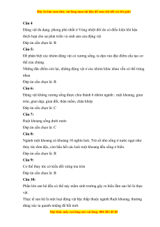 Câu 4: Động vật đa dạng, phong phú nhất ở A. Vùng ôn đới. B. Vùng nhiệt đới. C. Vùng nam cực. D. Vùng bắc cực.