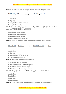 Câu 7: Cho NST có trình tự các gen như sau, xác định dạng đột biến: A. đảo đoạn B. lặp đoạn