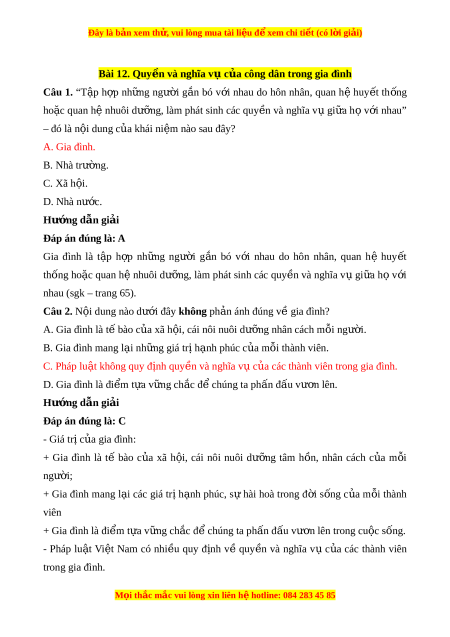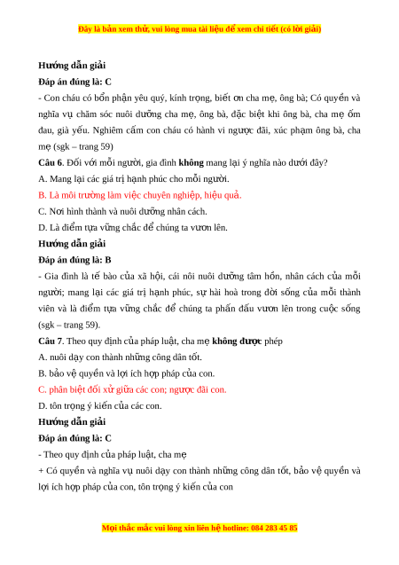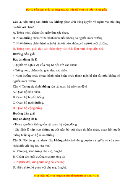 Đây là bản xem th , vu ử i lòng mua tài li u ệ đ xe ể m chi ti t ế (có l i ờ gi i ả ) Câu 3. N i ộ dung nào dư i ớ đây không ph n ả ánh đúng quy n ề và nghĩa vụ c a ủ ông bà đối v i ớ cháu?