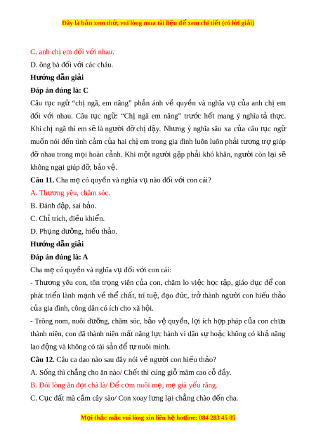 Đây là bản xem th , vu ử i lòng mua tài li u ệ đ xe ể m chi ti t ế (có l i ờ gi i ả ) Hư ng d ớ ẫn gi i ả Đáp án đúng là: C - Con cháu có b n ổ ph n ậ yêu quý, kính tr ng, ọ bi t ế n ơ cha m , ẹ ông bà; Có quy n ề và