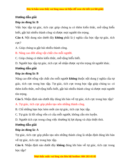Đây là bản xem th , vu ử i lòng mua tài li u ệ đ xe ể m chi ti t (c ế ó l i ờ gi i ả ) Hư ng d ớ ẫn gi i ả Đáp án đúng là: B Việc h c ọ t p ậ tự giác, tích c c