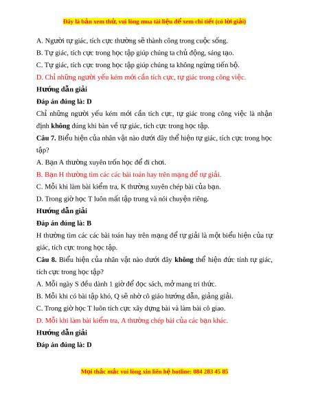 Đây là bản xem th , vu ử i lòng mua tài li u ệ đ xe ể m chi ti t (c ế ó l i ờ gi i ả ) A. Ngư i ờ t gi ự ác, tích c c ự thư ng s ờ t ẽ hành công trong cu c ộ s ng. ố B. T gi ự ác, tích c c ự trong h c ọ t p gi ậ úp chúng ta ch đ ủ ng, ộ sáng t o. ạ C. T gi ự ác, tích c c ự trong h c ọ t p gi ậ úp chúng ta không ng ng t ừ i n b ế . ộ D. Chỉ nh ng ng ữ ư i ờ y u kém ế m i ớ c n t ầ ích c c, ự t gi ự ác trong công vi c. ệ Hư ng d ớ ẫn gi i ả Đáp án đúng là: D Chỉ nh ng ữ ngư i ờ y u ế kém m i ớ c n ầ tích c c,
