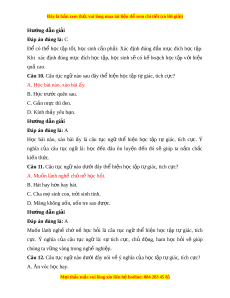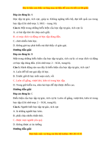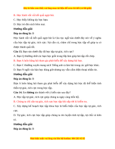 D. Hăng hái phát bi u xây d ể ng bài ự . Hư ng d ớ ẫn gi i ả Đáp án đúng là: D Hăng hái phát bi u ể xây d ng ự bài là Vi c ệ làm th ể hi n ệ tính t ự giác, tích c c ự trong ho t ạ đ ng h ộ c t ọ p. ậ Câu 9. Để có th h ể c t ọ p ậ tốt, h c ọ sinh c n ph ầ i ả A. giúp đỡ bố m công vi ẹ c gi ệ a đình. B. thư ng xuyên t ờ p ậ luy n t ệ h d ể c ụ th t ể hao. C. xác đ nh đúng đ ị n m ắ c ụ đích h c t ọ p. ậ D. tích c c ự tham gia ho t ạ đ ng ộ đ n ề n đáp nghĩ ơ a. M i