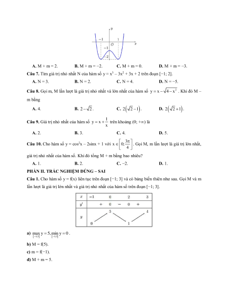 Câu 8. Gọi m, M lần lượt là giá trị nhỏ nhất và lớn nhất của hàm số 2
