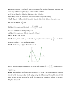 Câu 9. Giá trị nhỏ nhất của hàm số 1 y x trên khoảng (0; +∞) là x A. 2. B. 3. C. 4. D. 5.