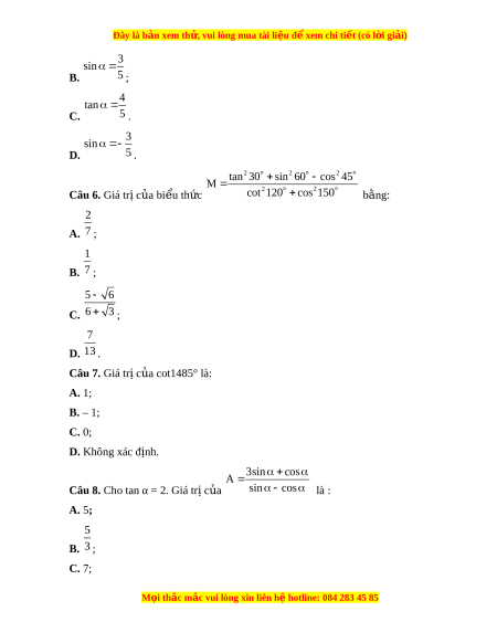 Đây là bản xem th , vu ử i lòng mua tài li u ệ đ xe ể m chi ti t (c ế ó l i ờ gi i ả ) 3 sin B. 5 ; 4 tan C. 5 . 3 sin D. 5 . 2 2 2