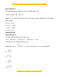 ế cos α = 13 và 90° < α < 180°. Giá tr c ị a s ủ in α và tan α l n l ầ ư t ợ là? 12 2 ; A. 13 3 ; 2 5 ; B. 3 12 ; 12 12 ; C. 13 5 ; 12 12 ; D. 13 5 . M i ọ thắc m c