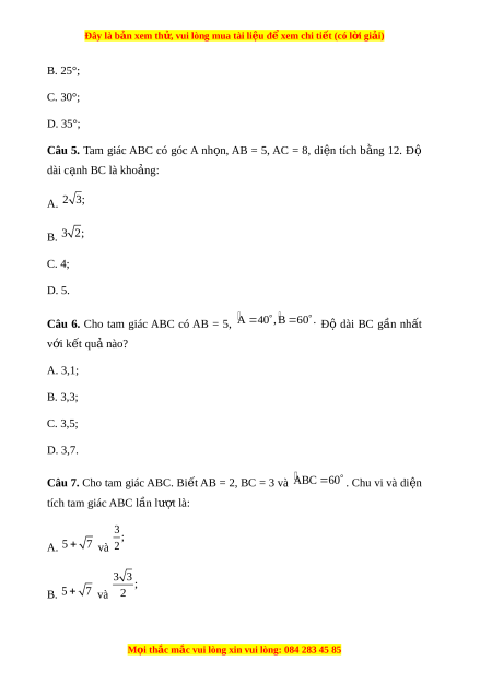 Đây là bản xem th , vu ử i lòng mua tài li u ệ đ xe ể m chi ti t (c ế ó l i ờ gi i ả ) B. 25°; C. 30°; D. 35°;