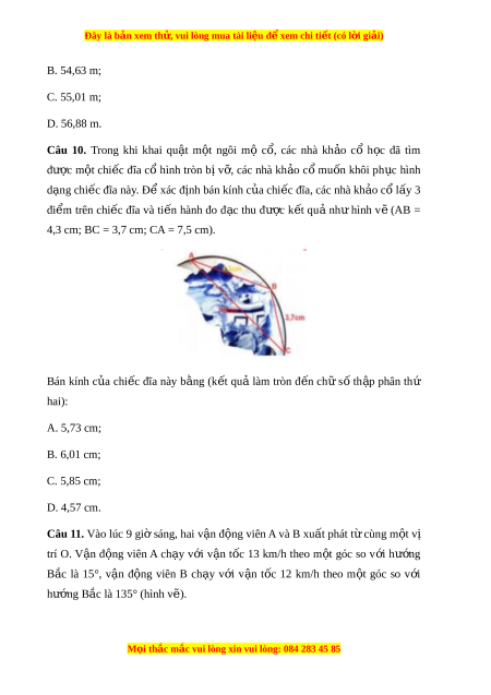 Đây là bản xem th , vu ử i lòng mua tài li u ệ đ xe ể m chi ti t (c ế ó l i ờ gi i ả ) B. 54,63 m; C. 55,01 m; D. 56,88 m.