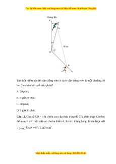 Câu 12. Gi s CD = h là chi u cao c a tháp trong đó C là chân tháp. Cho haiả ử ề ủ