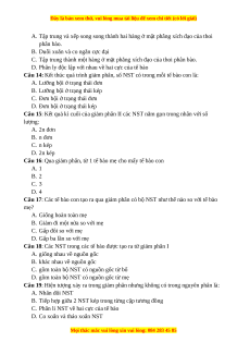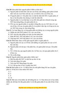 Câu 15: Kết quả kì cuối của giảm phân II các NST nằm gọn trong nhân với số