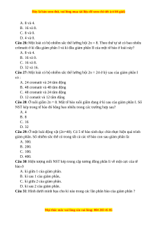Câu 25: Một loài có bộ nhiễm sắc thể lưỡng bội 2n = 8. Theo thứ tự sẽ có bao nhiêu
