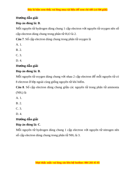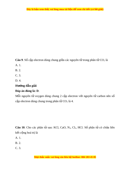Đây là bản xem th , vu ử i lòng mua tài li u ệ đ xe ể m chi ti t (c ế ó l i ờ gi i ả ) Câu 9. Số c p el ặ ectron dùng chung gi a