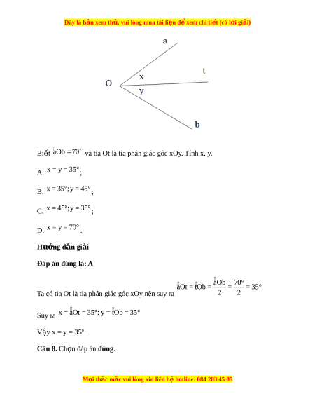 ệ . Tia phân giác c a m ủ t ộ góc. Câu 1. Ch n