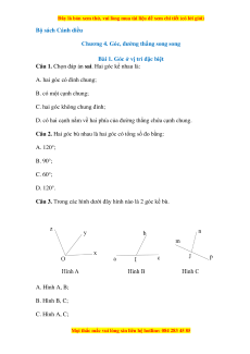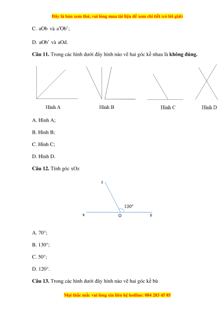 Câu 1. Chọn đáp án sai. Hai góc kề nhau là: