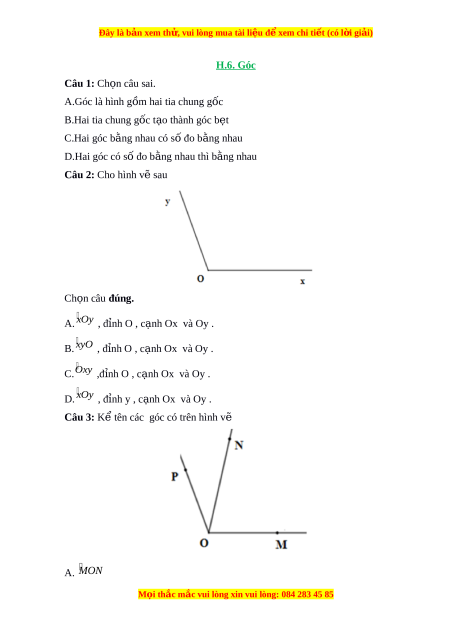 Đây là bản xem th , vu ử i lòng mua tài li u ệ đ xe ể m chi ti t ế (có l i ờ gi i ả ) H .6. G óc Câu 1: Ch n ọ câu sai.