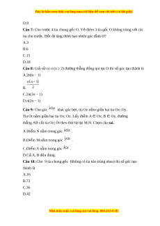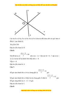 ỏ đã tăng thêm bao nhiêu góc đ nh ỉ O? A.3 B.6 C.15 D.18 Câu 8: Giả s có ử n (n ≥ 2) đư ng t ờ h ng ẳ đ ng qui ồ t i ạ O thì số góc t o t ạ hành là A.2n(n − 1) n n 1 B. 2 C.2n(2n − 1) D.n(2n − 1)