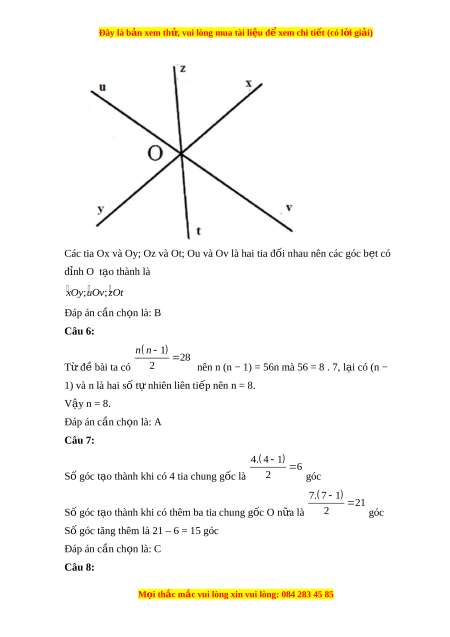 Câu 6: Cho n ( n ≥ 2 ) tia chung g c, trong đó không có hai tia nào trùng nhau. ố