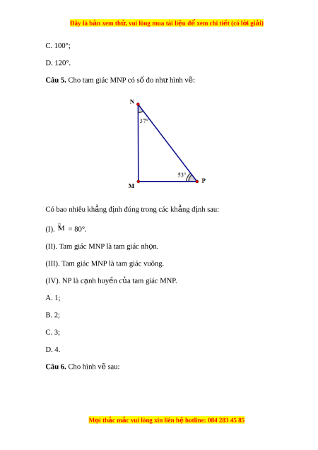 Câu 5. Cho tam giác MNP có s đo nh hình v :ố ư ẽ