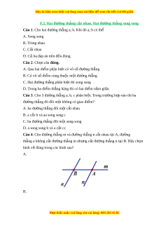 Đây là bản xem th , vu ử i lòng mua tài li u ệ đ xe ể m chi ti t ế (có l i ờ gi i ả ) F .2. H ai đư ng t ờ h ng c ẳ t ắ nhau. Hai đư ng t ờ h ng s ẳ ong song Câu 1. Cho hai đư ng ờ th ng