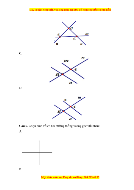 Đây là bản xem th , vu ử i lòng mua tài li u ệ đ xe ể m chi ti t ế (có l i ờ gi i ả ) C. D. Câu 5. Ch n hì ọ nh v có hai ẽ đư ng ờ th ng vuông góc v ẳ i ớ nhau: A. B. M i