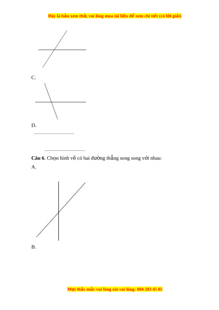 Đây là bản xem th , vu ử i lòng mua tài li u ệ đ xe ể m chi ti t ế (có l i ờ gi i ả ) C. D. Câu 6. Ch n hì ọ nh v có hai ẽ đư ng ờ th ng s ẳ ong song v i ớ nhau: A. B. M i