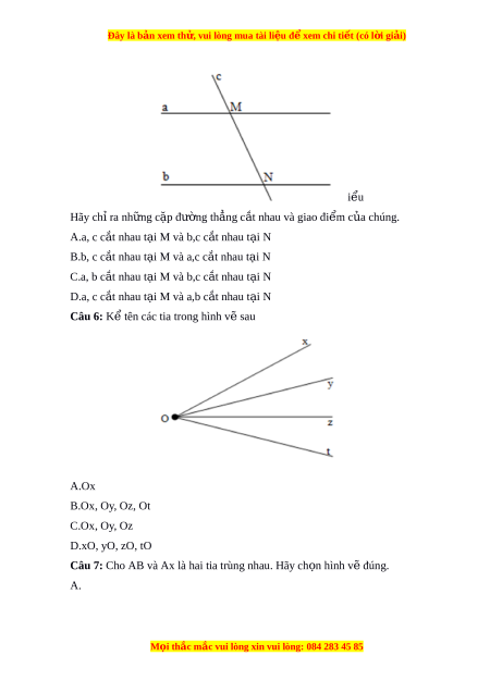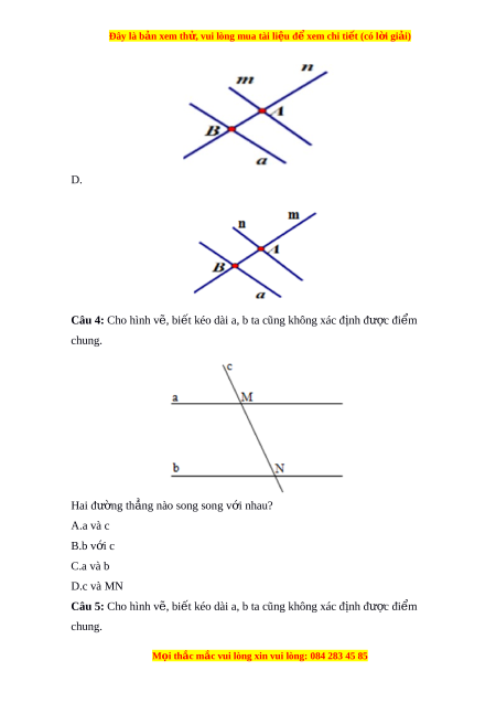 Đây là bản xem th , vu ử i lòng mua tài li u ệ đ xe ể m chi ti t ế (có l i ờ gi i ả ) i u ể Hãy chỉ ra nh ng c ữ p ặ đư ng t ờ h ng c ẳ t ắ nhau và giao đi m ể c a ủ chúng. A.a, c c t ắ nhau t i ạ M và b,c c t ắ nhau t i ạ N B.b, c c t ắ nhau t i ạ M và a,c c t ắ nhau t i ạ N C.a, b c t ắ nhau t i ạ M và b,c c t ắ nhau t i ạ N D.a, c c t ắ nhau t i ạ M và a,b c t ắ nhau t i ạ N