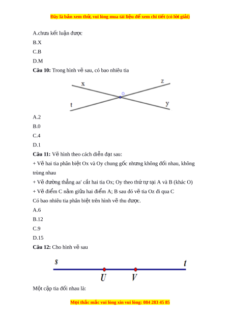 Câu 10: Trong hình v sau, có bao nhiêu tiaẽ