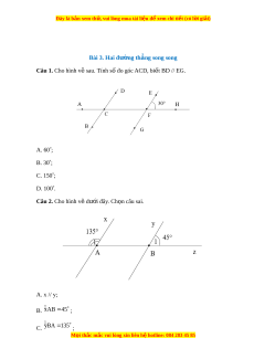 Câu 1. Cho hình vẽ sau. Tính s đo góc ố ACD, bi t ế BD // EG. A. 60; B. 30; C. 150; D. 100.