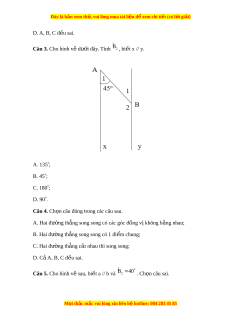 Câu 3. Cho hình vẽ dư i ớ đây. Tính B2 , bi t ế x // y. A. 135; B. 45; C. 180; D. 90.