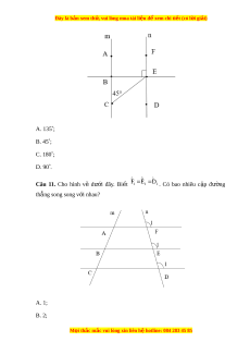 Câu 7. Cho hình vẽ bên dư i ớ . C p ặ góc đ ng ồ vị là c p ặ góc nào trong các c p ặ góc sau đây? A. 1 A và 3 B ; M i ọ thắc m c