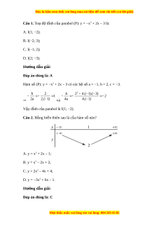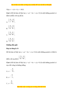 ậ hai y = ax2 + bx + c (a ≠ 0) là m t ộ đư ng ờ parabol có đỉnh là đi m ể v i ớ toạ đ l ộ à: b ; A. a 4a ; b ; B. 2a 4a ; b ; C. 4a 4a ; b ; D. 4a 2a . Hư ng d ớ ẫn gi i ả Đáp án đúng là: B Đồ thị hàm số b c