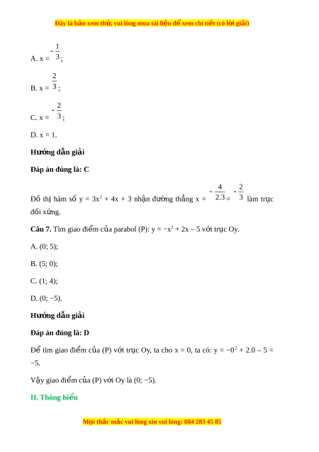 ụ Oy, ta cho x = 0, ta có: y = −02 + 2.0 – 5 = −5. V y ậ giao đi m ể c a ( ủ P) v i ớ Oy là (0; −5). II. Thông hi u ể M i ọ thắc m c