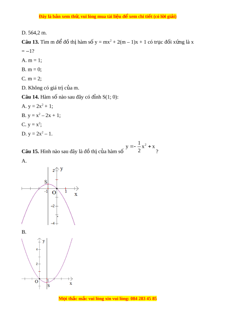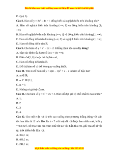 Đây là bản xem th , vu ử i lòng mua tài li u ệ đ xe ể m chi ti t (c ế ó l i ờ gi i ả ) D. 564,2 m. Câu 13. Tìm m đ đ ể t ồ h hàm ị s y = m ố x2 + 2(m – 1)x + 1 có tr c ụ đ i ố x ng l ứ à x = 1? ‒ A. m = 1; B. m = 0; C. m = 2; D. Không có giá tr c ị a m ủ .