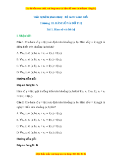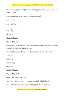 D. ∀x1, x2 (a; b), x1 < x2 f(x1) ≤ f(x2). Hư ng ớ d n gi ẫ i ả Đáp án đúng là: B M i