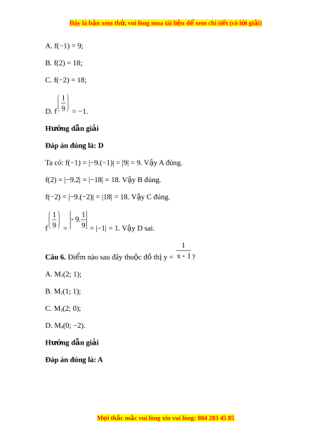 Đây là bản xem th , vu ử i lòng mua tài li u ệ đ xe ể m chi ti t ế (có l i ờ gi i ả ) A. f(−1) = 9; B. f(2) = 18; C. f(−2) = 18; 1 D. f 9 = −1. Hư ng ớ d n gi ẫ i ả Đáp án đúng là: D