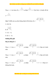 Thay x = 2 vào hàm số y = x 1 ta đư c ợ 2 1 = 1. V y ậ M1(2; 1) thu c ộ đồ thị 1 y = x 1 . 2 x 4x 4 Câu 7. Đi m