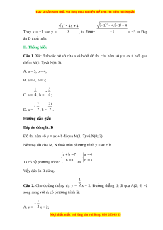 Câu 1. Xác đ nh các h s c a a và b đ đ th c a hàm s y = ax + b đi quaị ệ ố ủ ể ồ ị ủ ố