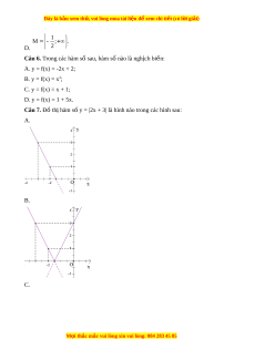 Câu 6. Trong các hàm số sau, hàm số nào là ngh ch bi ị n: ế A. y = f(x) = -2x + 2; B. y = f(x) = x2; C. y = f(x) = x + 1; D. y = f(x) = 1 + 5x.