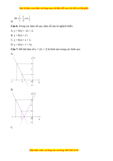 Câu 7. Đồ thị hàm số y = |2x + 3| là hình nào trong các hình sau: A. B. C. M i ọ thắc m c