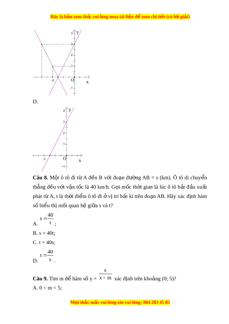 Đây là bản xem th , vu ử i lòng mua tài li u ệ đ xe ể m chi ti t ế (có l i ờ gi i ả ) D. Câu 8. M t ộ ô tô đi từ A đ n ế B v i ớ đo n ạ đư ng