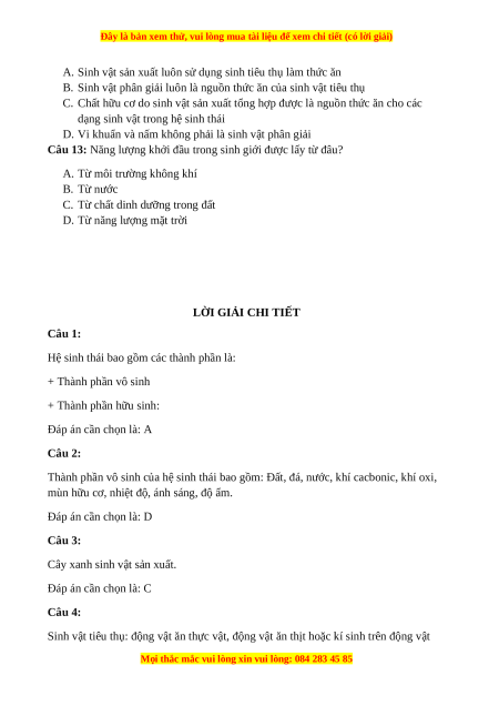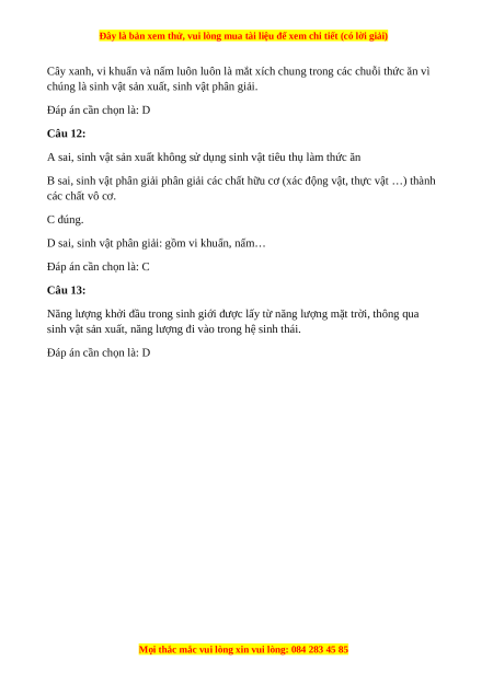 chúng là sinh vật sản xuất, sinh vật phân giải. Đáp án cần chọn là: D Câu 11: