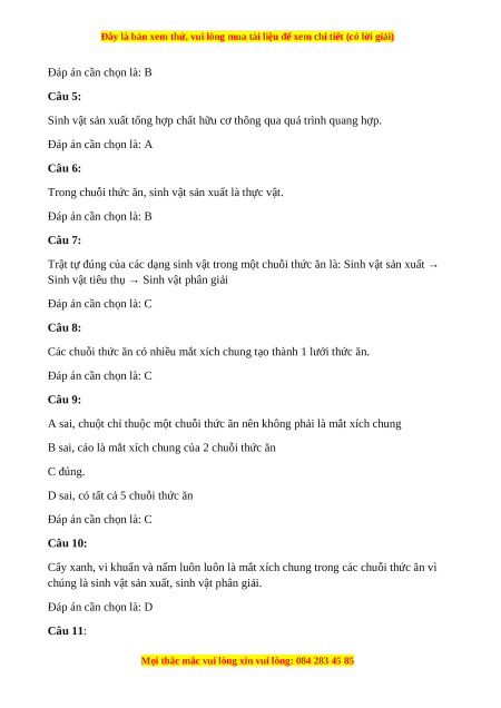 D sai, có tất cả 5 chuỗi thức ăn Đáp án cần chọn là: C Câu 10: