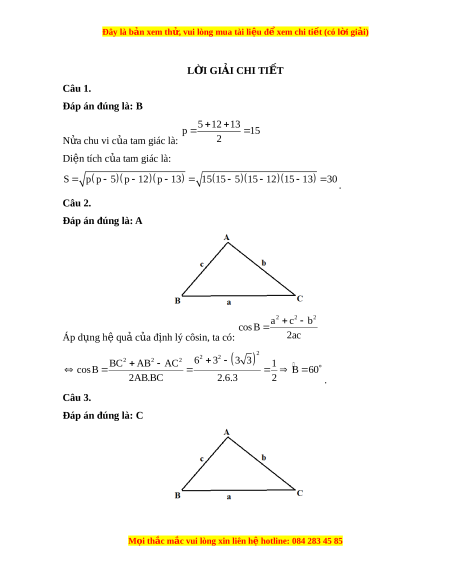 Đây là bản xem th , vu ử i lòng mua tài li u ệ đ xe ể m chi ti t (c ế ó l i ờ gi i ả ) Bài 6. H t ệ h c l ứ ư ng t ợ rong tam giác Câu 1. Tính di n t