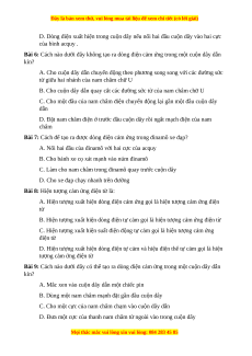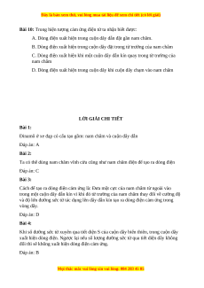 D. Dòng điện xuất hiện trong cuộn dây khi cuộn dây chạm vào nam châm LỜI GIẢI CHI TIẾT Bài 1: