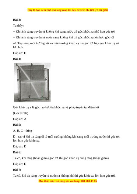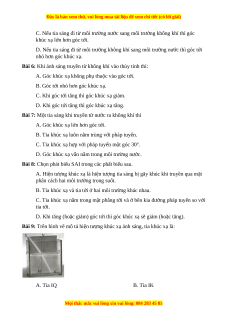 Bài 7: Một tia sáng khi truyền từ nước ra không khí thì
