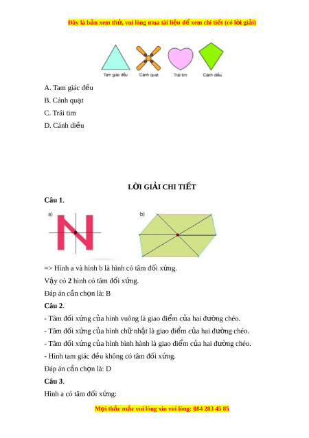 Đây là bản xem th , vu ử i lòng mua tài li u ệ đ xe ể m chi ti t ế (có l i ờ gi i ả ) A. Tam giác đ u ề B. Cánh qu t ạ C. Trái tim D. Cánh di u ề L I Ờ GIẢI CHI TI T Ế Câu 1.