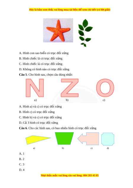 Đây là bản xem th , vu ử i lòng mua tài li u ệ đ xe ể m chi ti t ế (có l i ờ gi i ả ) A. Hình con sao bi n có t ể r c ụ đ i ố x ng ứ B. Hình chi c ế lá có tr c ụ đ i ố x ng ứ C. Hình chi c ế lá có tr c ụ đ i ố x ng ứ