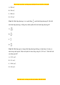 tích hình lập phương A bằng bao nhiêu phần thể tích hình lập phương B? 64 A. ; 125 12 B. ; 64 4 C. ; 5 16 D. . 25