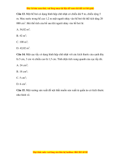 Câu 10. Một bể nước mưa có dạng hình hộp chữ nhật có các kích thước của đáy